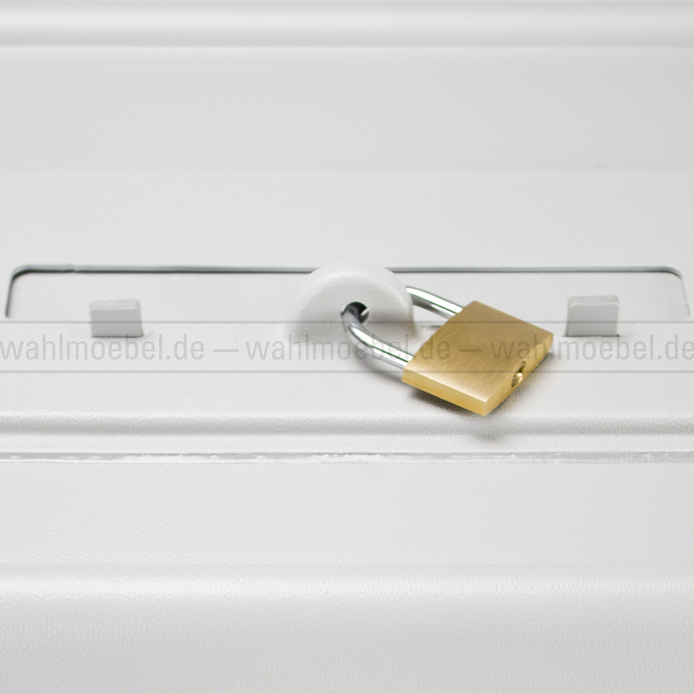 Stülpdeckel mit Bohrung zum Anbringen eines Vorhängeschlosses bzw. Plombe